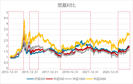 回顧歷史歷次市場(chǎng)大漲的時(shí)期,小盤股通常比大盤股表現(xiàn)出更大的彈性。小盤股的資金門檻更低,使得更多的投資者能夠參與其中。在大漲期間,投資者普遍對(duì)未來(lái)市場(chǎng)持樂(lè)觀態(tài)度,愿意承擔(dān)更高的風(fēng)險(xiǎn)以換取潛在的高回報(bào)。小盤股由于其高波動(dòng)性和高成長(zhǎng)潛力,正好迎合了這種風(fēng)險(xiǎn)偏好。