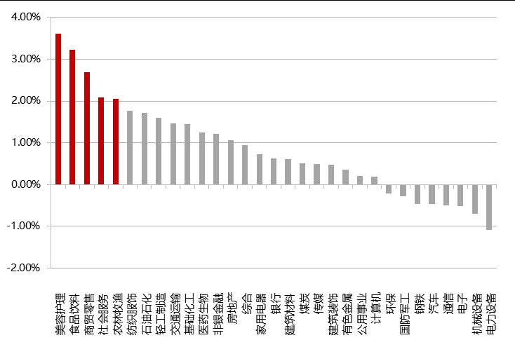 ▼申萬一級行業漲跌幅